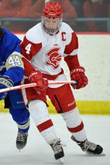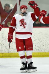 Jacob Holmers celebrates his 16th goal of the season, which gave the Red Knights a 4-1 lead.